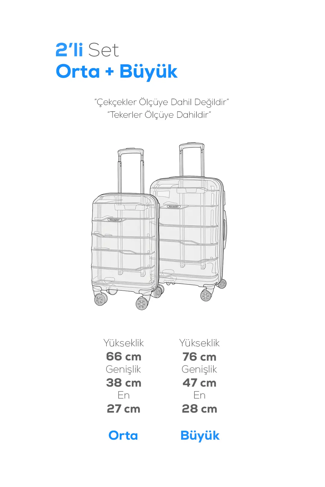 Polo&Sky Azra Model Çivit PP Kırılmaz 2'li Orta + Büyük Boy Valiz Seti