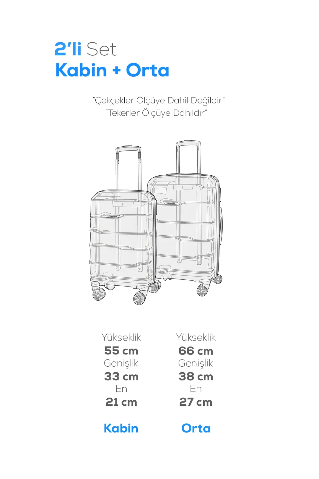 Polo&Sky Azra Model Gold Renk PP Kırılmaz 2'li Kabin Boy + Orta Boy Valiz Seti